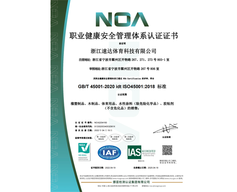 • 職業健康安全管理體係認證證書
